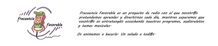 Aujourd’hui nous vous présentons l’emission “Frecuencia Favorable”, un programme de varietés au format magazine qui traite diverses thématiques: sport, politique, economíe, tauromachie et d’autres sujets de l’actualité espagnole. L’émission est réalisée par les membres du Centre de Rehabilitation Psicosocial (C.R.P.S.) de Getafe, à Madrid. Dans leur  programme seront également diffusés des contes, des audio-récits, de la poésie ainsi que des musiques de leurs compositions.
